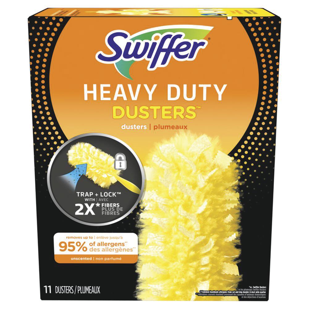 Swiffer® Heavy-Duty Dusters trap and lock up to three times more dust and allergens, 360 degrees of specially coated fibers grab onto dust and don’t let go. They are uniquely designed to trap and lock dust from every direction.